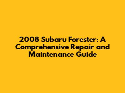 2008 Subaru Forester: Common Issues & Repair Guide