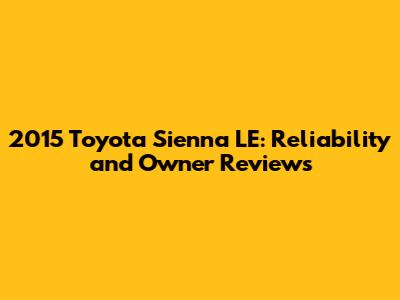 Is the 2015 Toyota Sienna LE a Reliable Choice for You?
