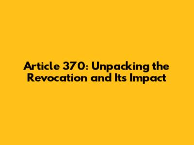 Article 370: Unpacking The Revocation And Its Impact