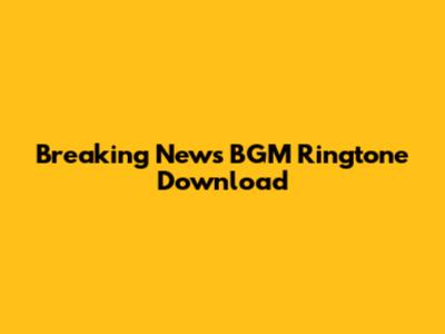 Breaking News BGM Ringtone: Free Download