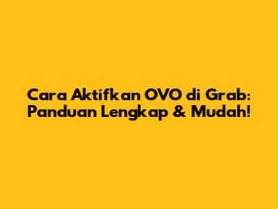 Cara Aktifkan OVO Di Grab: Panduan Lengkap & Mudah!