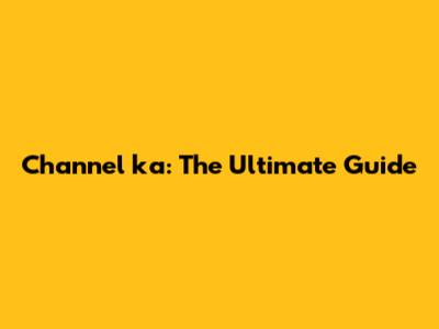 Channel Ka: Ultimate Guide