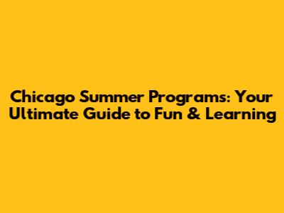 Chicago Summer Programs: Your Ultimate Guide To Fun & Learning