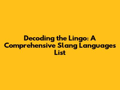 Decoding The Lingo: A Comprehensive Slang Languages List