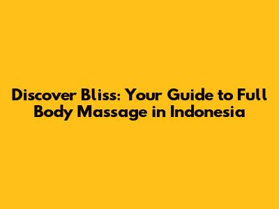 Discover Bliss: Your Guide To Full Body Massage In Indonesia
