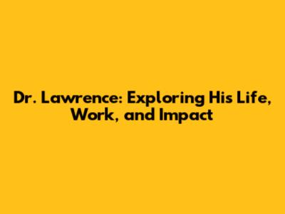 Dr. Lawrence: Exploring His Life, Work, And Impact