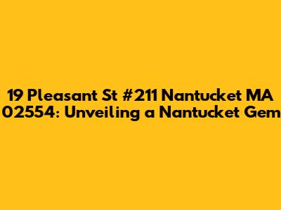 Hey guys! Let's dive into the charming world of real estate, specifically, the delightful property at 19 Pleasant St, Unit 211, Nantucket, MA 02554. This isn't just a random address; it's a potential slice of paradise in one of America's most beloved and picturesque locations. We're going to take a closer look, exploring what makes this address so special, the potential investment opportunities, and everything in between. Whether you're a seasoned investor, a first-time homebuyer with stars in your eyes, or simply curious about Nantucket living, this is your go-to guide. So, grab a coffee (or a Nantucket Nectar!), and let's get started!