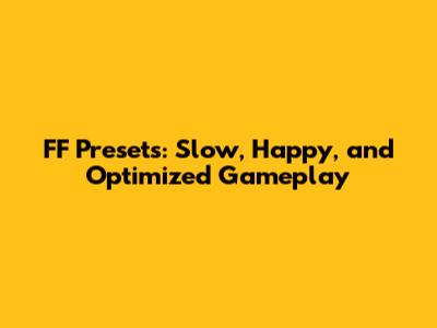 FF Presets: Slow, Happy, And Optimized Gameplay
