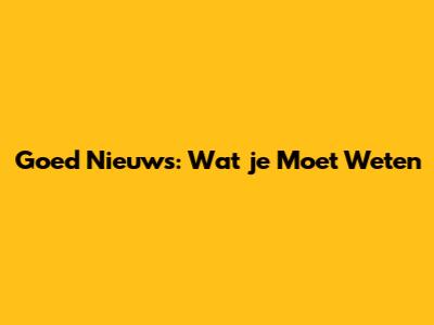 Goed Nieuws: Wat Je Moet Weten