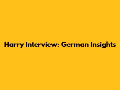 Harry Interview: German Insights