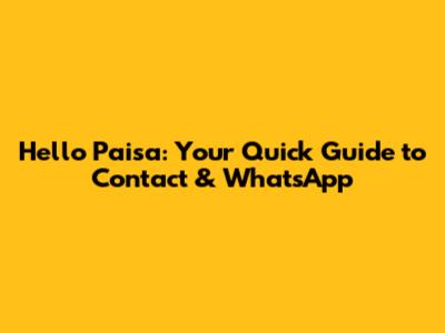 Hello Paisa: Contact Info & WhatsApp Guide