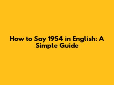 How To Say 1954 In English: A Simple Guide