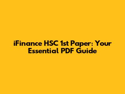 IFinance HSC 1st Paper: Your Essential PDF Guide