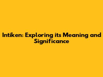 Intiken: Exploring Its Meaning And Significance