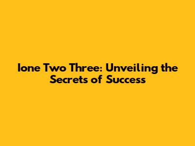 Ione Two Three: Unveiling The Secrets Of Success