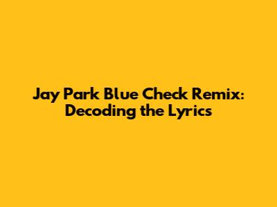 Hey guys! Ever find yourself vibing to a song but totally missing what it's actually about? Let's dive deep into the catchy and intriguing world of Jay Park's "Blue Check Remix." We're gonna break down the lyrics, explore the meanings, and get a real understanding of what Jay Park is laying down in this track. Whether you're a long-time fan or just discovering his music, get ready to level up your appreciation for this banger!