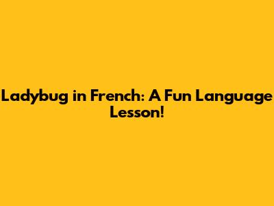 Ladybug In French: A Fun Language Lesson!