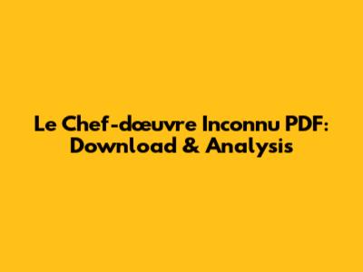 Le Chef-d'œuvre Inconnu PDF: Download & Analysis