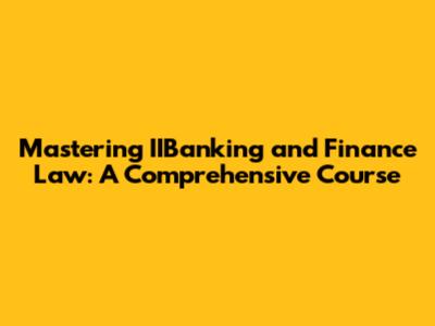Mastering IIBanking And Finance Law: A Comprehensive Course