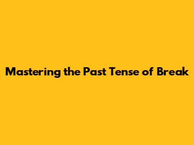 Mastering The Past Tense Of 'Break'
