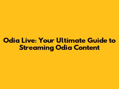 Odia Live: Your Ultimate Guide To Streaming Odia Content