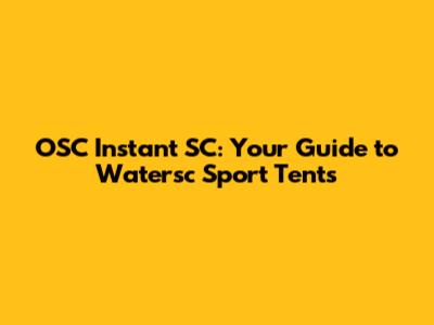 OSC Instant SC: Your Guide To Watersc Sport Tents