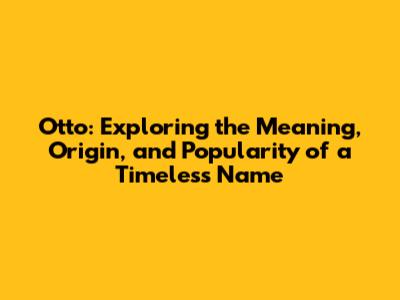 Otto: Meaning, Origin, And Popularity