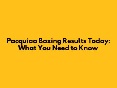 Pacquiao Boxing Results Today: What You Need To Know