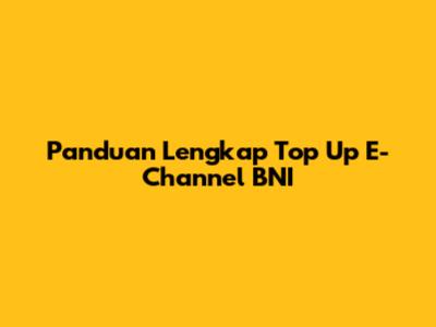 Panduan Lengkap Top Up E-Channel BNI