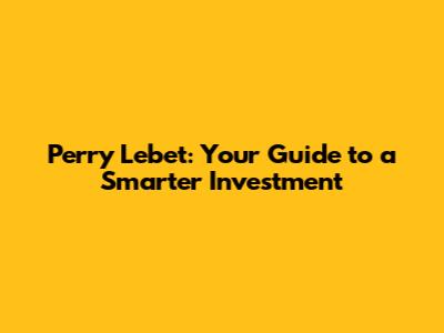 Perry Lebet: Your Guide To A Smarter Investment