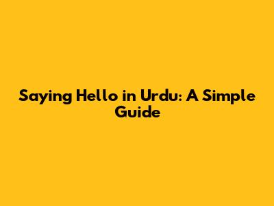 Saying Hello In Urdu: A Simple Guide