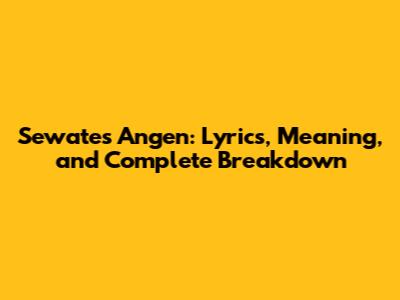 Sewates Angen: Lyrics, Meaning, And Complete Breakdown