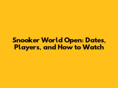 Snooker World Open: Dates, Players, And How To Watch