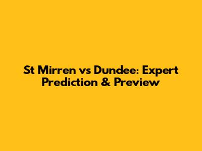 St Mirren Vs Dundee: Expert Prediction & Preview