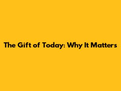 The Gift Of Today: Why It Matters
