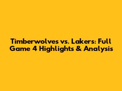 Timberwolves Vs Lakers: Full Game 4 Highlights & Analysis