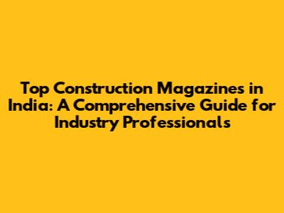 Top Construction Magazines In India: A Comprehensive Guide