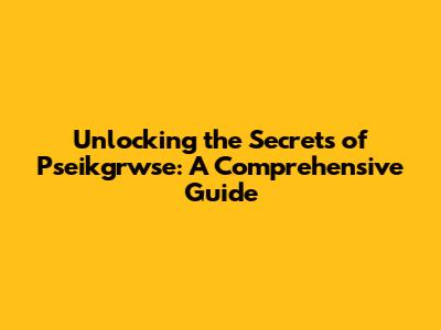 Unlocking The Secrets Of Pseikgrwse: A Comprehensive Guide