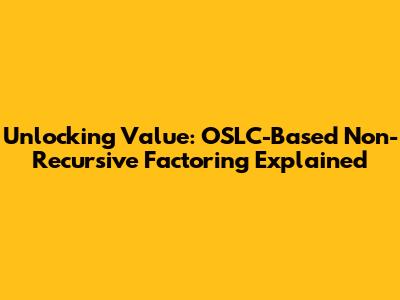 Unlocking Value: OSLC-Based Non-Recursive Factoring Explained
