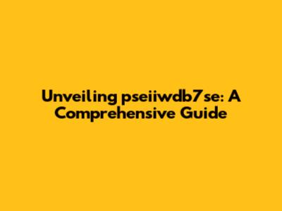 Unveiling Pseiiwdb7se: A Comprehensive Guide