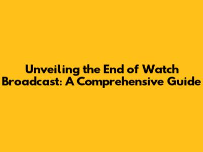 Unveiling The End Of Watch Broadcast: A Comprehensive Guide