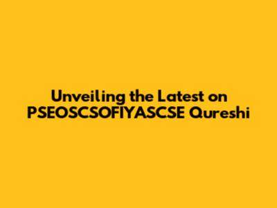 Recent News and Updates on PSEOSCSOFIYASCSE Qureshi