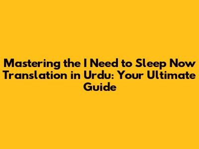 Urdu Translation: I Need To Sleep Now