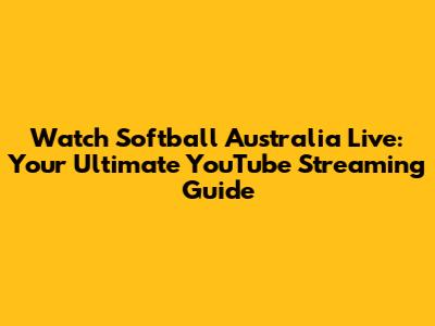Watch Softball Australia Live: YouTube Streaming Guide