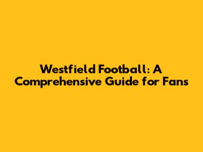 Westfield Football: A Comprehensive Guide For Fans
