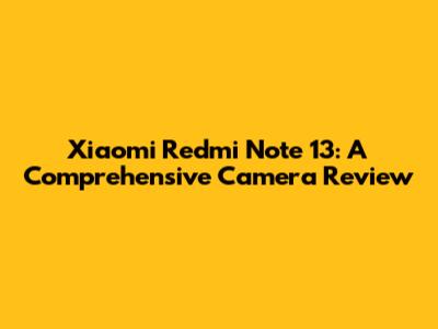 Xiaomi Redmi Note 13: Camera Deep Dive & Troubleshooting